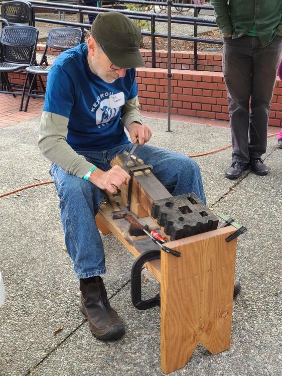 At Dave Bernard’s gas powered forge, they were heating up tool steel, and woodworkers could come and talk about their individual tools. They could also see the methods used in forge-welding Japanese style blades.