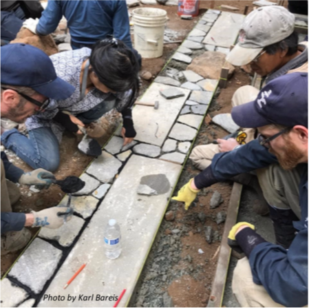 Shogetsu-an: The volunteers got hands-on experience creating this nobedan walkway in front of the tea house. Photo by Karl Bareis.